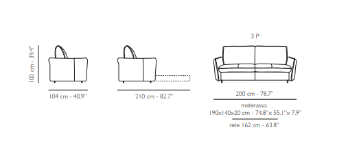 Divano letto Momenti 3 posti con comoda e ampia seduta completamente sfoderabile, porta guanciale e piedi neri a scomparsa. La rete è larga 162 cm e il materasso (altezza 20 cm e densità 30) è dotato di rivestimento anallergico e antibatterico. Il tessuto scelto (Diamond 10, e dettagli Diamond 11), oltre ad essere antimacchia e idrorepellente, è caratterizzato da evidenti sfumature che generano un forte impatto visivo. Questo dettaglio, insieme alla trapuntatura applicata sui braccioli e alla diversa finitura utilizzata sui bordi, rende Oceano perfetto per ambienti in stile classico contemporaneo. Pensato per soddisfare esigenze diverse in termini estetici e di spazio, questo divano si rivela la soluzione ideale per la famiglia. Il meccanismo di apertura del divano letto è a ribalta.